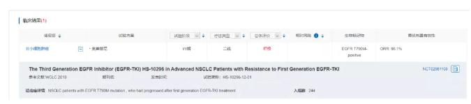 在对第一代EGFR抑制剂耐药的晚期非小细胞肺癌患者中开展的 II期临床试验(NCT02981108)中,受试者的ORR达到66.1%。