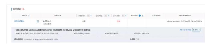 在全球首个针对溃疡性结肠炎的生物制品头对头III期VARSITY临床试验中,维多珠单抗对比阿达木单抗显示出优效性,主要终点临床缓解率为31.3% vs 22.5% (p=0.0061),且安全性更好。