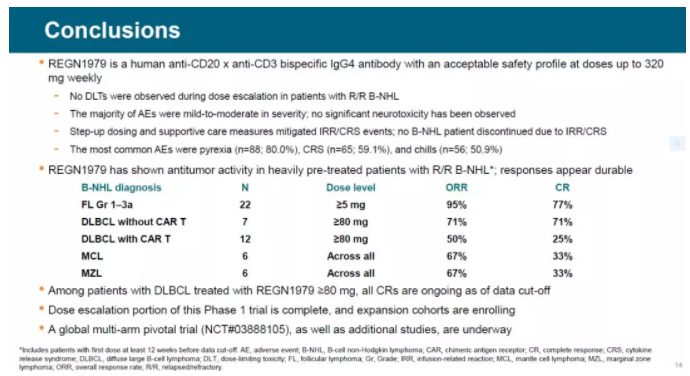 [7] Clinical Activity of REGN1979, a Bispecific Human, Anti-CD20 x Anti-CD3 Antibody,