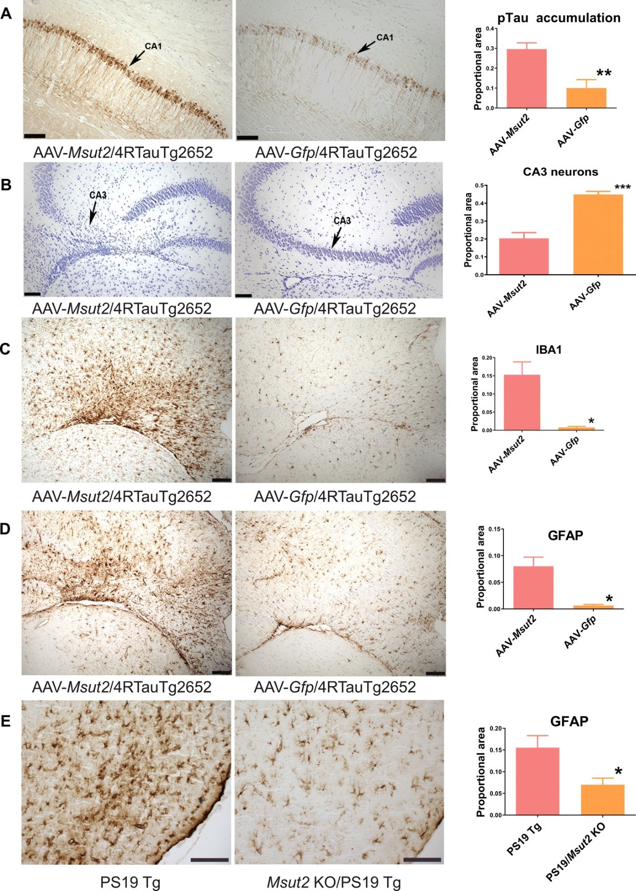 在小鼠中抑制MSUT2可防止Tau蛋白病(图片来源:Science Translational Medicine)