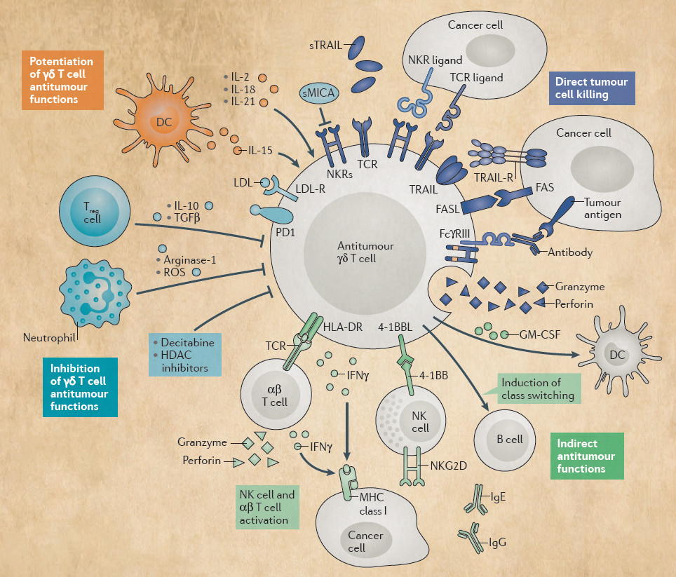 [1] Silva-Santos, B. et al. γδ T cells: pleiotropic immune effectors with therapeutic potentialin cancer. Nat. Rev. Cancer 19, 392–404 (2019).