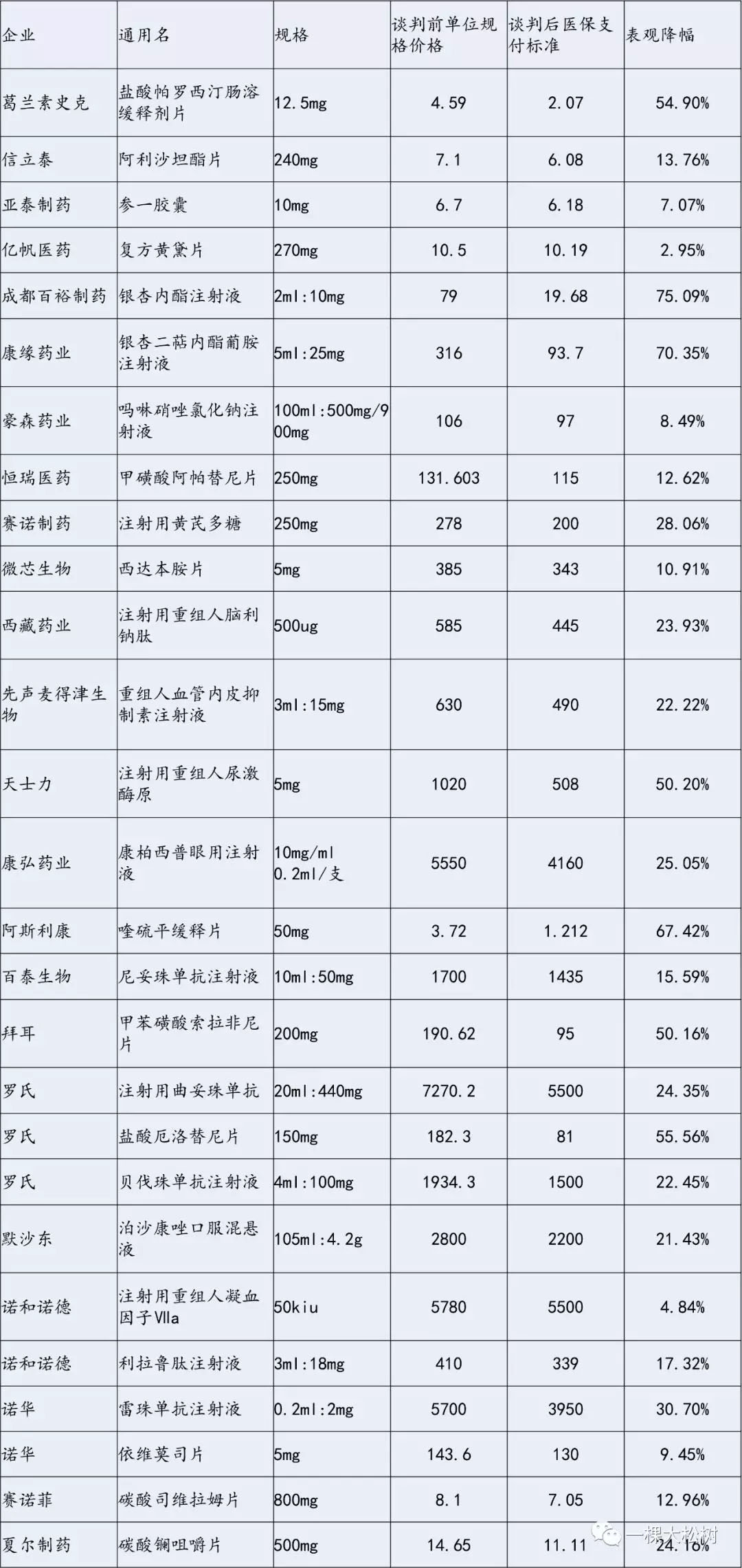 不过,在距离官方公布医保谈判准入目录一个月后,日前,网上流传着一份关于新增入选品种和续约品种的具体降幅和降价前后对比图。