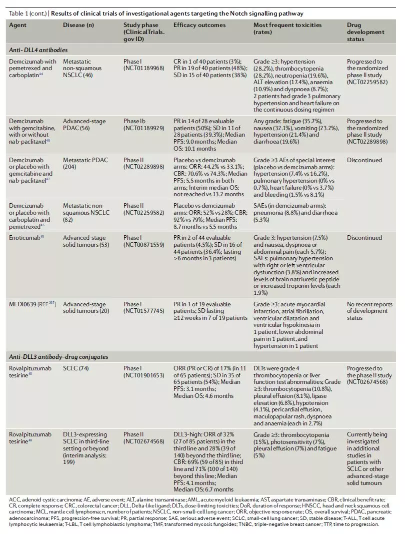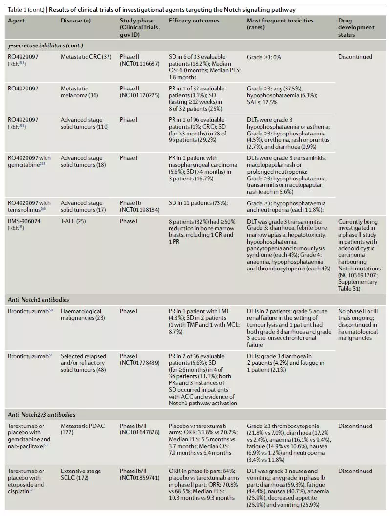 表1靶向Notch信号通路的在研药物的临床试验结果