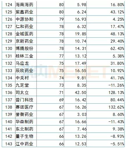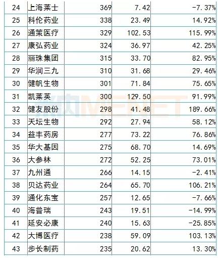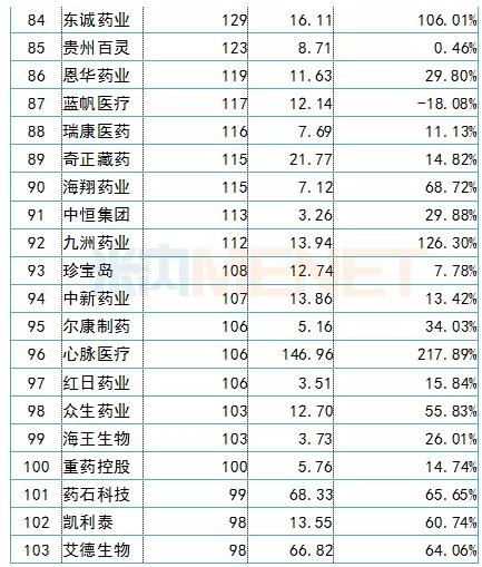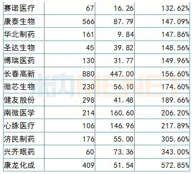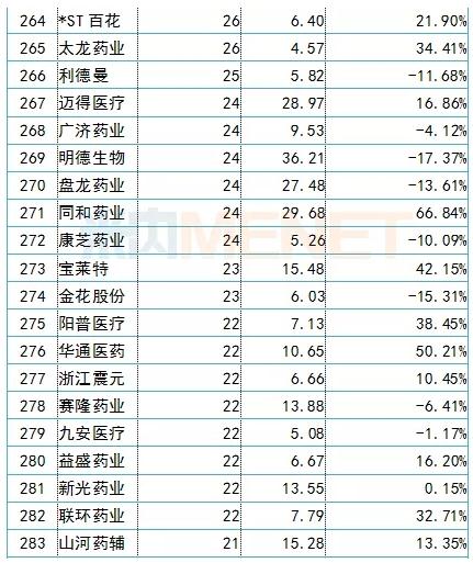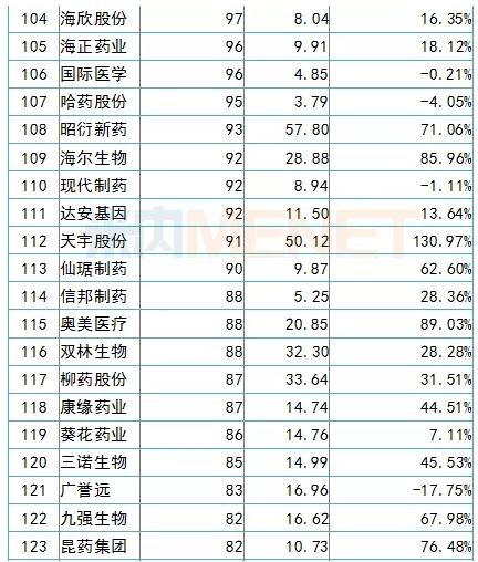 从涨跌幅来看,有28家药企市值翻倍,其中,康龙化成涨幅最大,达572.85%;其次是兴齐眼药和济民制药均超过300%。此外,还有微芯生物、博瑞医药等5家科创板药企也超过100%。