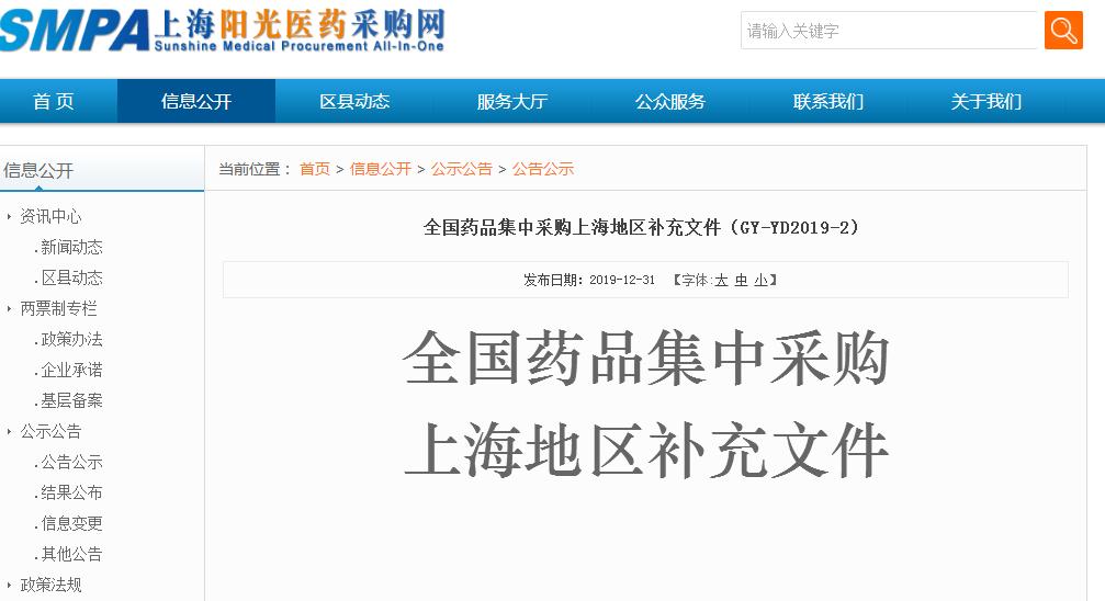 继官宣第二批国家药品集中采购正式启动后,近日,上海阳光采购网又发布了一份《全国药品集中采购上海补充文件》的通知(以下简称《通知》),就上海地区的企业申报、药品配送、质量检测、三方协议、货款支付、中选药品使用等内容作出补充说明。