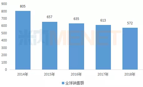 图2:2014-2018年度他雄胺全球销售情况(单位:百万英镑)