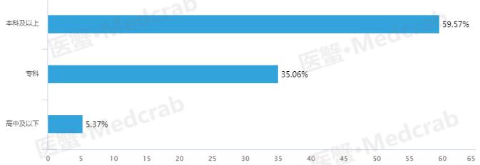 在学历方面,以往,在公众的意识里,该行业进入门槛相对偏低,尤其是最早进入这个行业的医药代表,貌似口才伶俐,做事圆滑,再能懂一些医药知识就可从事该职业,其实并不然,报告数据显示,59.57%的医药代表从业人员学历为本科以上的学历,35.06%的代表学历为专科,而只有5.47%的医药代表学历为高中及以下。