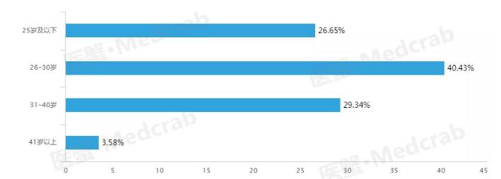 在年龄段方面,大部分的医药代表年龄段集中在26-30岁,其次为31-40周岁,仅有3.58%的医药代表是在40岁以上,年轻化趋势特征明显。