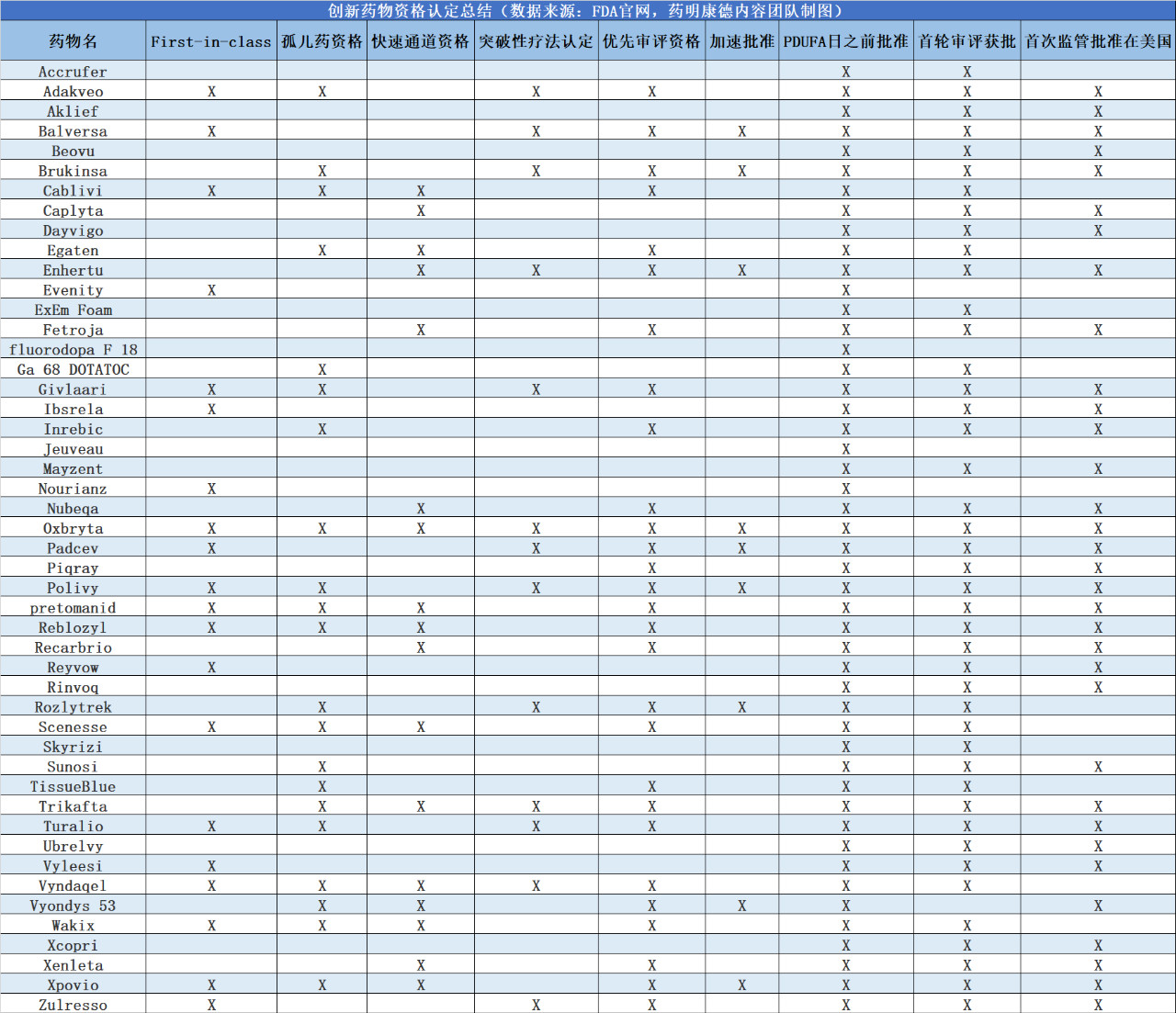 在2019年,FDA使用了多种监管通道增强创新药开发和批准的速度和效率。在2019年获批的创新药中,35%获得快速通道资格,27%获得突破性疗法认定,58%获得优先审评资格,19%获得加速批准。总体来说,29款创新药(60%)至少获得FDA四大资格认定中的一种。