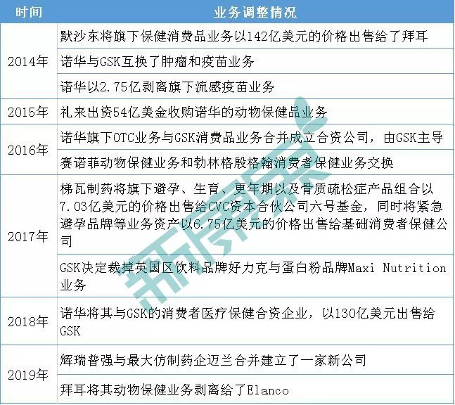 图表2:部分跨国药企调整非核心业务情况