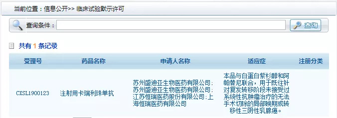 1月9日,CDE临床默示许可栏目更新,其中恒瑞PD-1(卡瑞利珠单抗)获批一项临床:与白蛋白紫杉醇和阿帕替尼联合,用于既往针对复发转移阶段未接受过系统性抗肿瘤治疗的无法手术切除的局部晚期或转移性三阴性乳腺癌。
