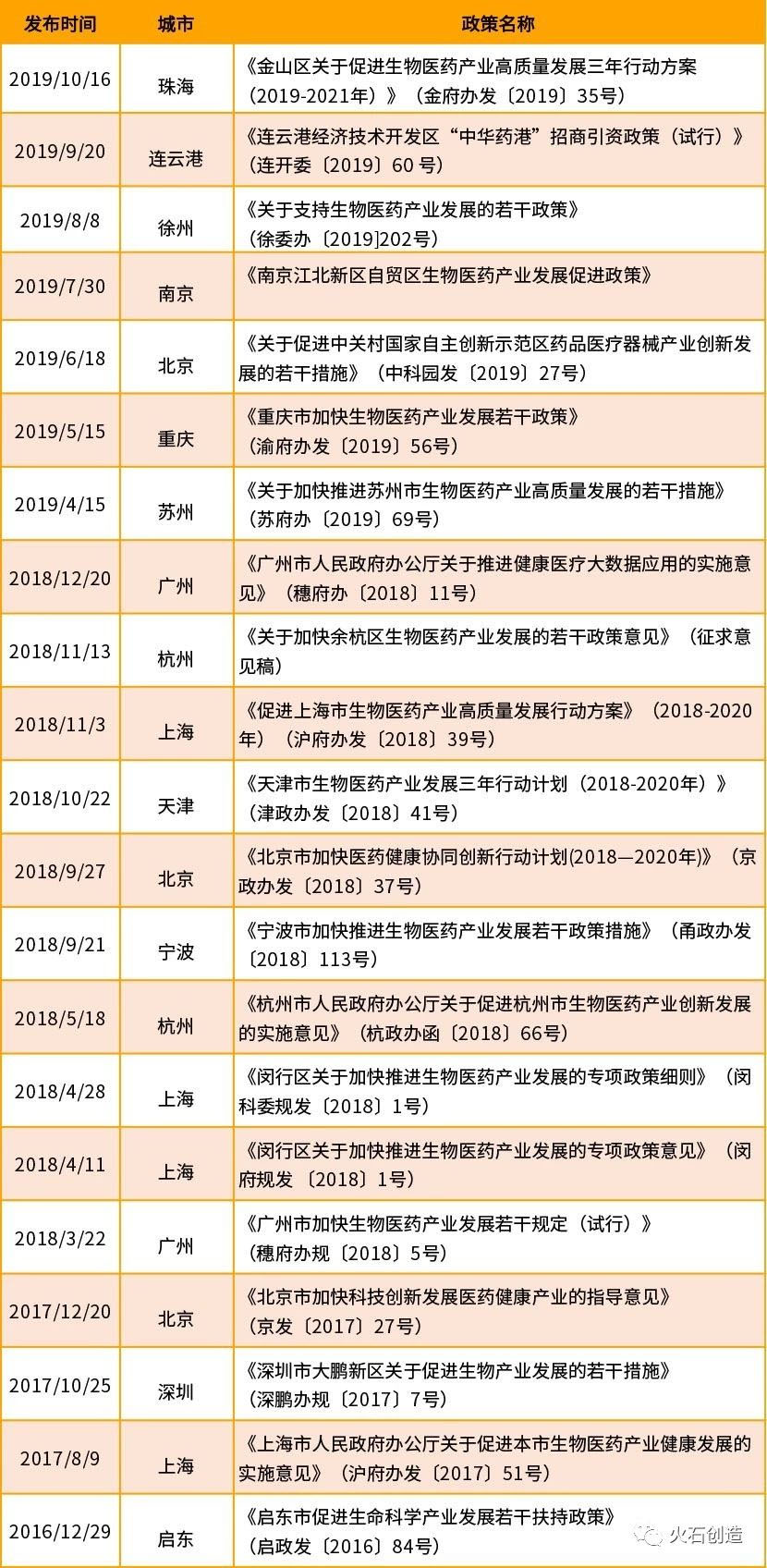 附表 近年来我国部分地区生物医药产业专项政策信息