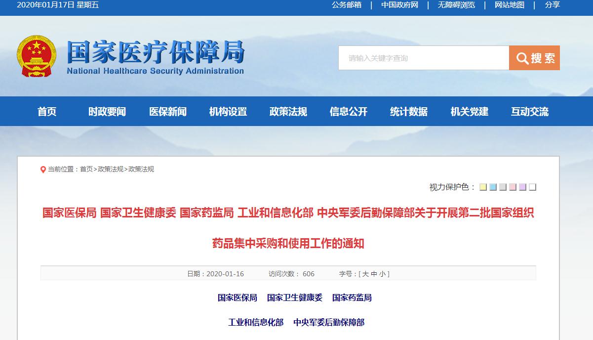 昨日(1月16日),国家医保局、国家卫健委、国家药监局等五部委联合发布《开展第二批国家组织药品集中采购和使用工作的通知》(以下简称通知),对第二批国家组织药品集中采购相关工作进行了明确规定和要求。