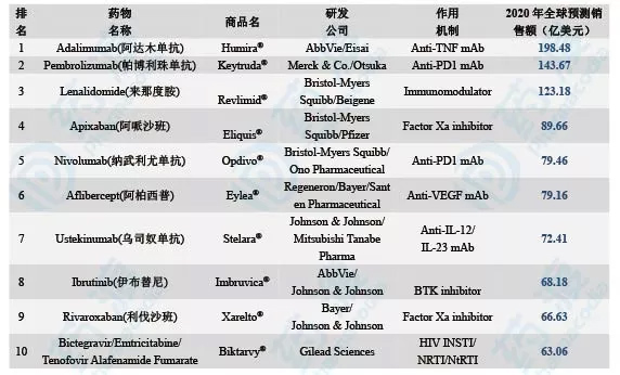 注:本文来源于Nature reviews drug discovery,《Top product forecasts for 2020》,笔者在此基础上稍有补充。