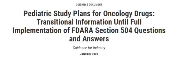 今日,FDA发布了一篇关于儿童肿瘤药物研究的指导草案,目的是向企业研究机构等提供关于提交初步儿童肿瘤药物研究计划(IPSP)的信息,这份草案以问答形式提供指导,解决最常见的问题。FDA表示这份没有规定法律上可执行的责任,只是描述了FDA目前对儿童肿瘤药物研究的想法。