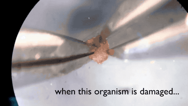 这些没有大脑的xenobots的行为方式简直是令人毛骨悚然, Levin表示,它们会不时地改变行动方式,一开始它们会以特定的方式行动,然后又会改变方式,转身、返回。当xenobots遇到其他零散的细胞时,就会把它们聚集成小堆。如果研究人员把一个xenobot切开,结果它不仅能把自己缝合起来,其后还能继续活动,四处走动。