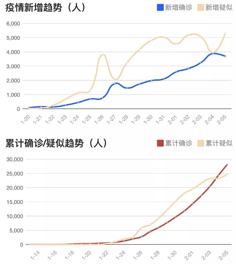 截至今日,全国累计报告确诊病例28083例,较上日增加3720例;全国疑似病例24702例,较上日增加5328例。