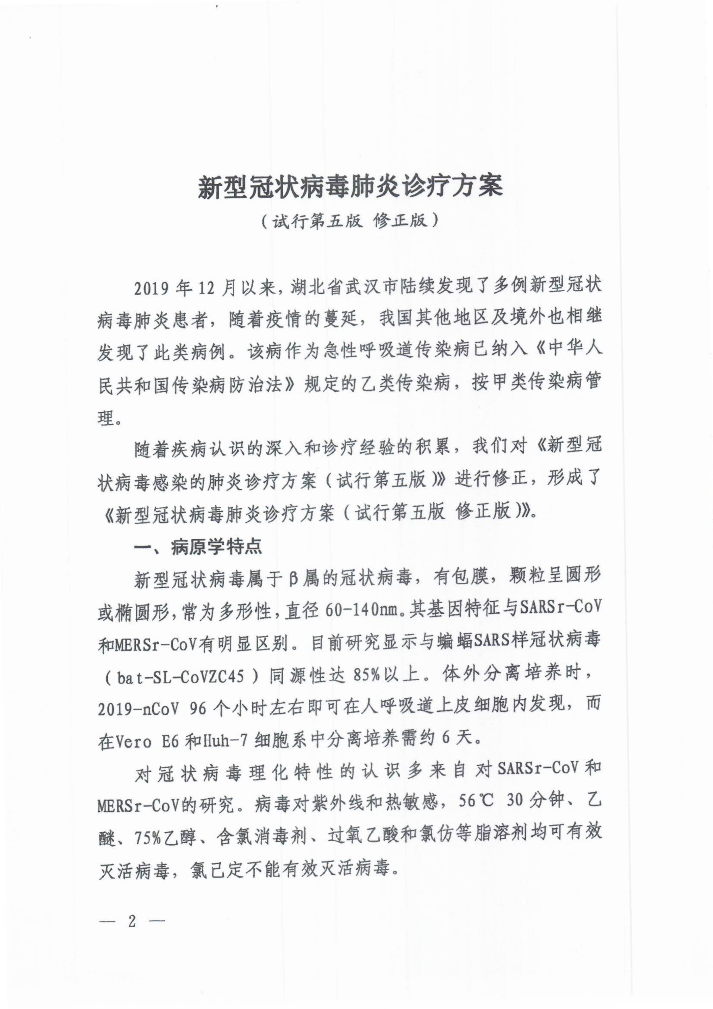 附:新型冠状病毒肺炎诊疗方案(试行第五版 修正版)
