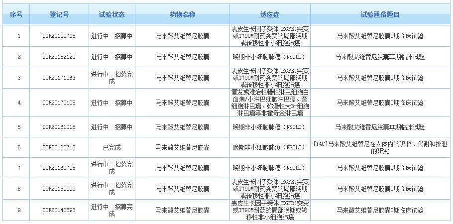 通过药物临床试验登记与信息公示平台查询显示,截止目前,共有9项关于艾维替尼的临床试验登记在列,其中,登记号为CTR20160713的临床试验已完成,其他8项均在进行中或者患者招募中。就在艾森医药加紧艾维替尼的研发之时,国内其他企业在三代EGFR-TKI布局方面也在加快步伐,据医谷记者了解,除了已获批的奥希替尼和阿美替尼,目前,国内有超过10家本土制药企业在研产品进入了临床阶段。