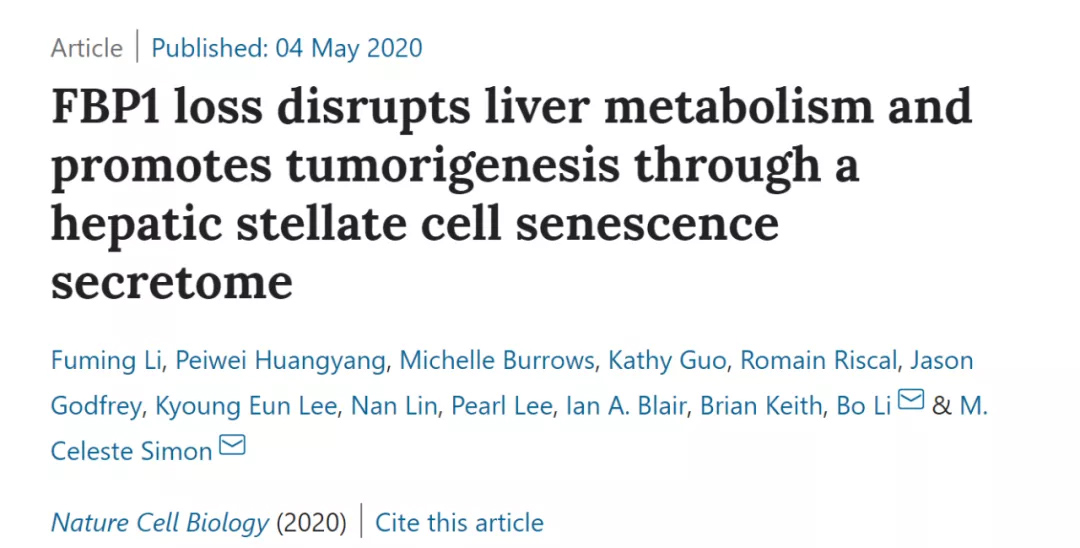 Senolytic治疗可限制肝星状细胞衰老和FBP1缺失驱动的肿瘤发展(图片来源:Nature Cell Biology)