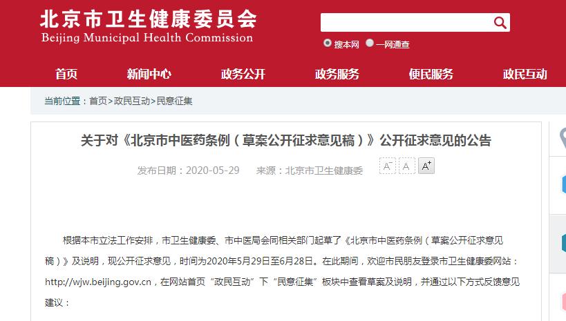 近日,北京市卫健委发布《北京市中医药条例(草案公开征求意见稿)》,该《征求意见稿》分为七章,分别为总则、中医药服务与保障、中医药规范与管理、中医药保护与传承、中医药开放与创新、法律责任和附则,共计五十五条。