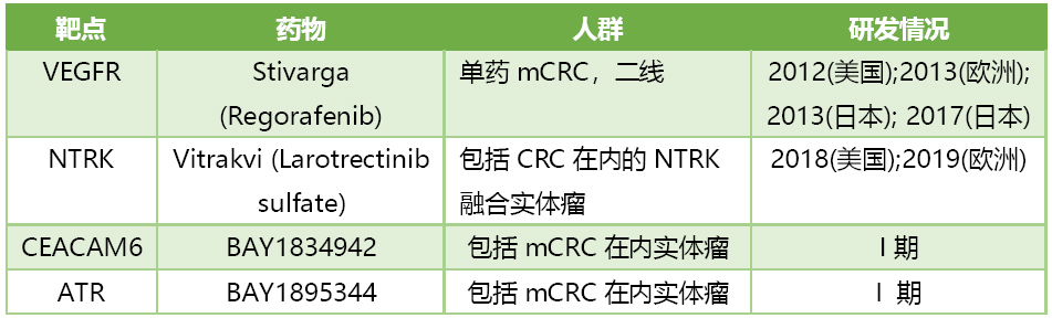 拜耳mCRC领域的产品进展