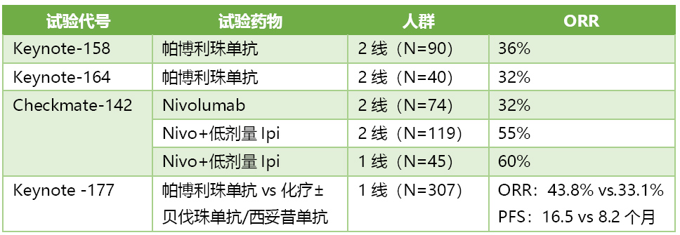 MSI-H/dMMR mCRC免疫治疗试验有效性比较