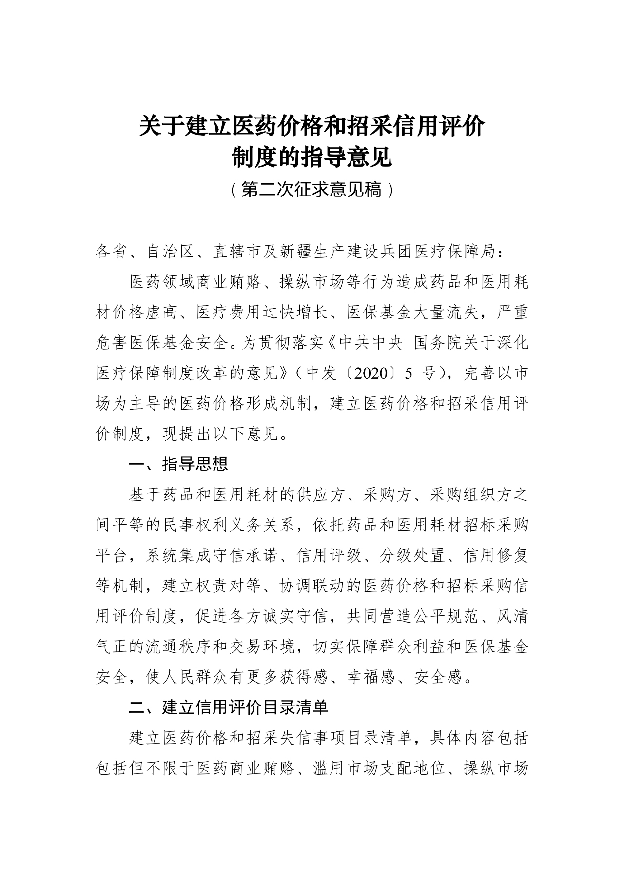 6月5日,国家医保局发布《关于建立医药价格和招采信用评价制度的指导意见(第二次征求意见稿)》(以下简称《指导意见》)与《医药价格和招采信用评价的操作规范(征求意见稿)》(以下简称《操作规范》)。《指导意见》与《操作规程》提出建立医药价格和招采失信事项目录清单,开展医药企业信用评级,分级处置失信违约行为,在暂停失信企业配送中标药品或医用耗材资格的同时,还将向社会公开披露失信信息等处置措施。