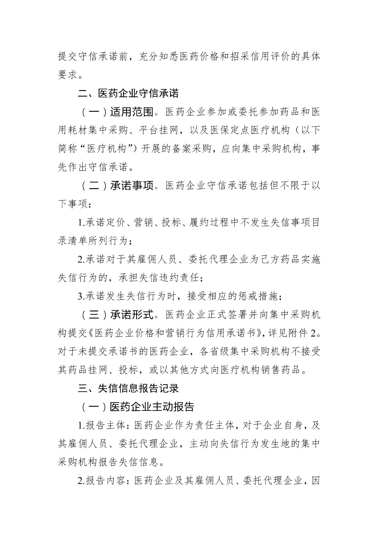 《指导意见》要求医药企业参加或委托参加药品和医用耗材集中采购、平台挂网,以及医保定点医疗机构开展的备案采购,应向药品和医用耗材集中采购机构提交书面承诺,承诺事项包括不发生列入目录清单的失信行为,对其雇佣人员、委托代理企业为己方药品实施的失信行为承担责任;承诺接受相应的制约措施。