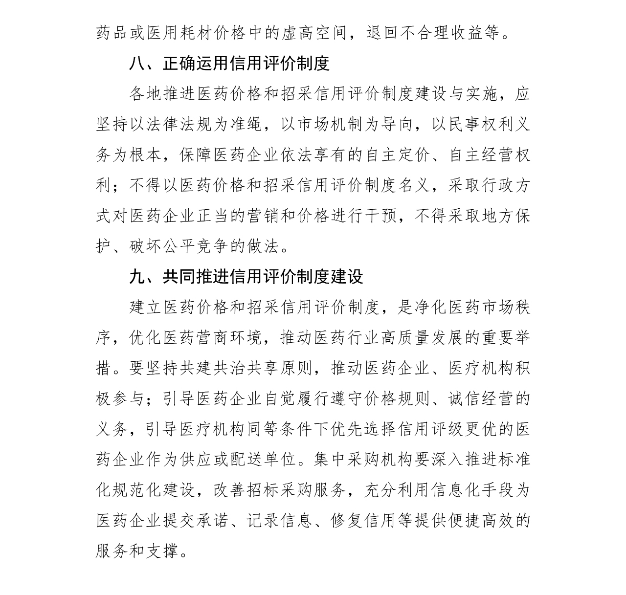 同时,不得以医药价格和招采信用评价制度名义,采取行政方式对医药企业正当的营销和价格进行干预,不得采取地方保护、破坏公平竞争的做法。