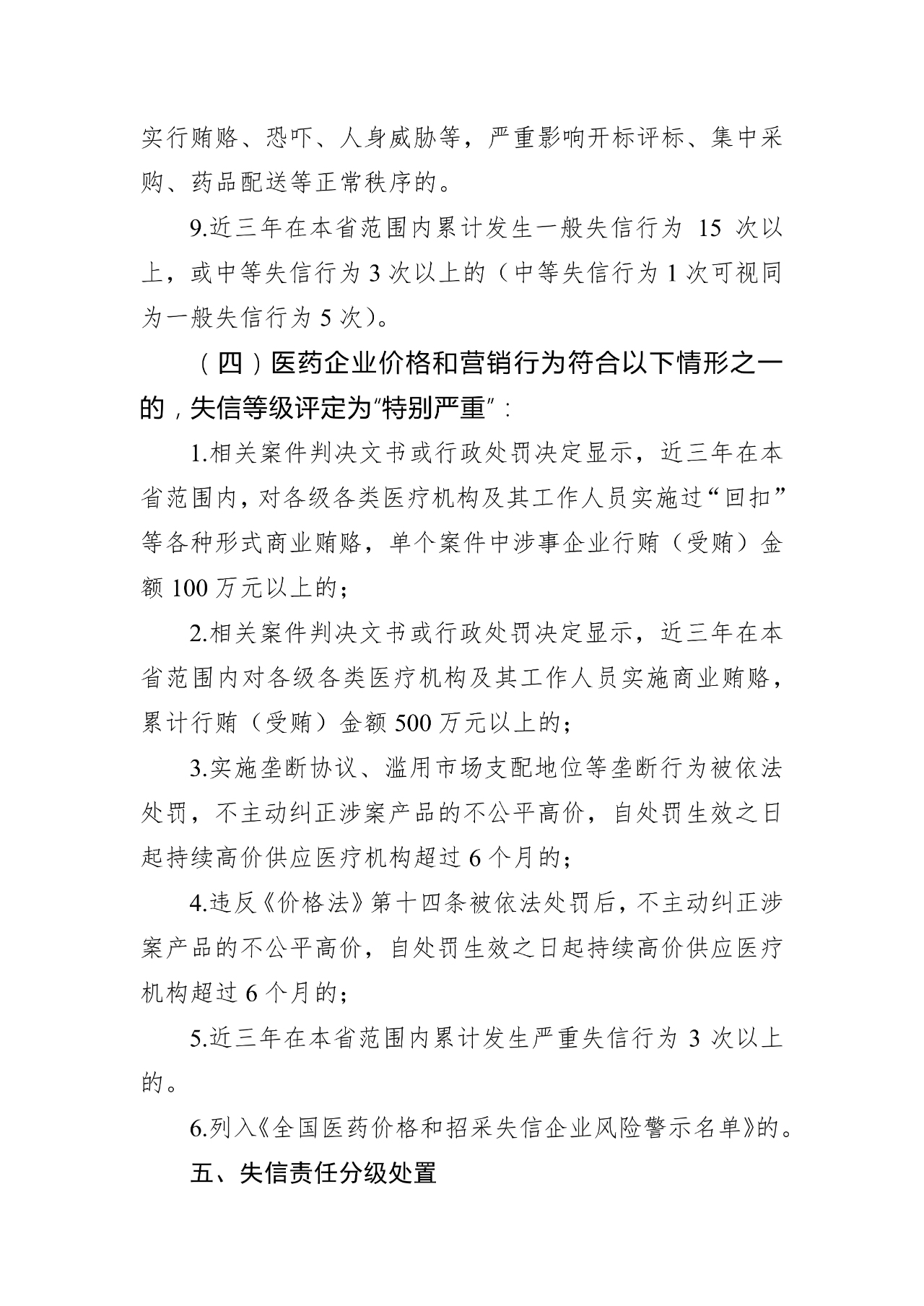 对于失信等级评定为“特别严重”的医药企业,则除提醒告诫、提示风险外,应暂停该企业全部药品挂网、投标或配送资格,暂停期限以医药企业信用修复、等级变化为准。