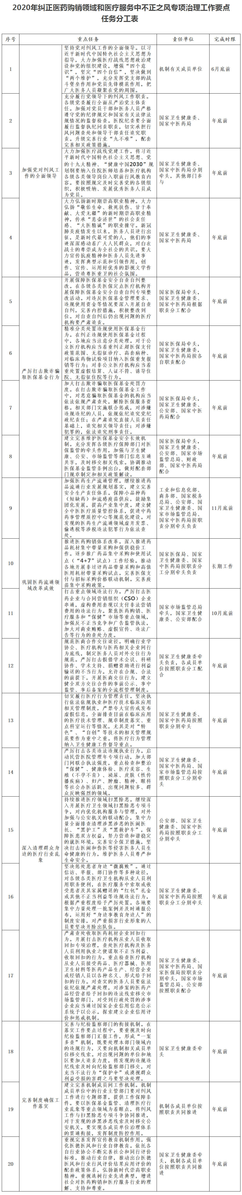 2020年纠正医药购销领域和医疗服务中不正之风工作要点