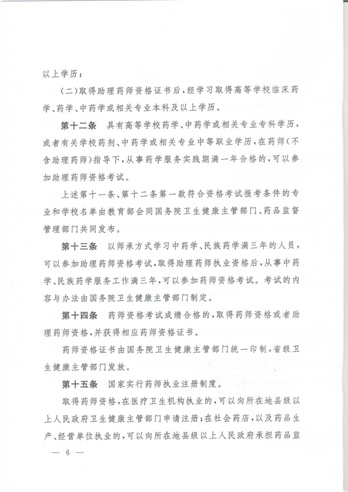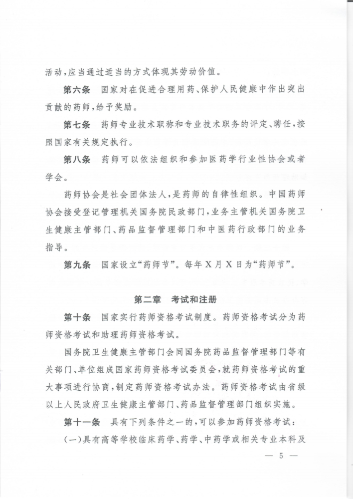 征求意见稿第十条明确:“国家实行药师资格考试制度。药师资格考试分为药师资格考试和助理药师资格考试。国务院卫生健康主管部门会同国务院药品监督管理部门等有关部门、单位组成国家药师资格考试委员会,就药师资格考试的重大事项进行协商,制定药师资格考试办法。”