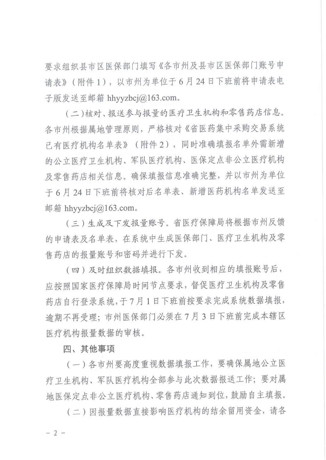 通知强调,市州医保部门必须在7月3日下班前完成本辖区医疗机构报量数据的审核。数据报送工作有严格的时限要求,各级医保部门或相关医药机构未按期或未按规定报送相关数据信息,不再允许补报;一经上报,不在允许修改。