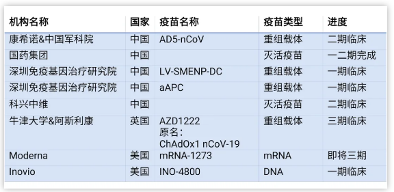 此外,据科技部6月19日的发布数据,目前中国已有1个腺病毒载体疫苗和4个灭活疫苗正式获得国家药监局批准开展临床试验,国外,Moderna、牛津大学、Inovio的疫苗也都在临床试验中,其中,Moderna近日宣布该公司计划在7月份对mRNA-1273进行3万名志愿者的最终测试。