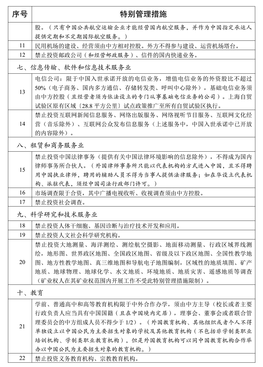 本次修订按照只减不增的原则,进一步缩减外商投资准入负面清单。其中全国外商投资准入负面清单由40条减至33条,自贸试验区外商投资准入负面清单由37条减至30条。
