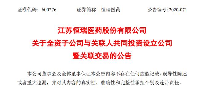 昨日晚间(7月6日),恒瑞医药发布公告称,全资子公司上海恒瑞医药有限公司(以下简称上海恒瑞)拟与公司关联自然人孙飘扬共同出资设立瑞利迪(上海)生物医药有限公司(以下简称瑞利迪),注册资本为1亿元,其中,上海恒瑞认缴出资6000万元,占注册资本的60%,孙飘扬认缴出资4000万元,占注册资本的40%。经营范围包括生物医药领域内的技术开发、技术咨询、技术服务、技术转让,将负责抗病毒疗法的研发、生产、销售及相关的进出口业务。