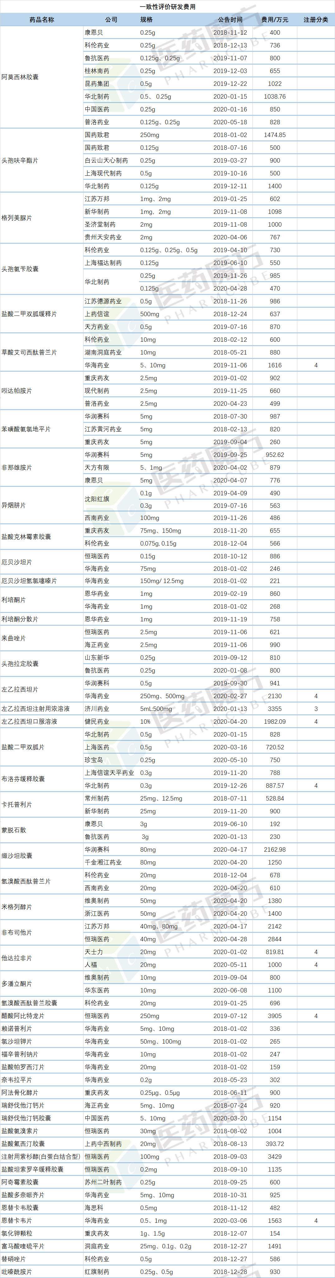 据医药魔方不完全统计,上市公司公告过研发费用的通过一致性评价药品(包含视同通过)共有161个。其中,49个费用等于或高于1000万元。而在视同通过的22个药品中,有15个等于或高于1000万元。