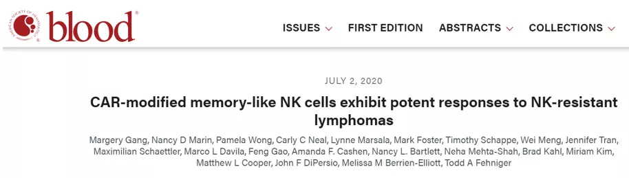 7月2日,在Blood杂志发表的一篇新研究中,华盛顿大学医学院的研究人员将免疫疗法的两种策略CAR(嵌合抗原受体)工程化和记忆样(memery-like)NK细胞组合成为一种新疗法,即CAR-ML NK细胞疗法。在治疗诸如白血病等血液癌方面,人体细胞和小鼠的研究结果显示这一疗法比单独使用CAR或记忆样NK细胞都更为有效,而且这种新疗法可能比CAR-T疗法更加安全。