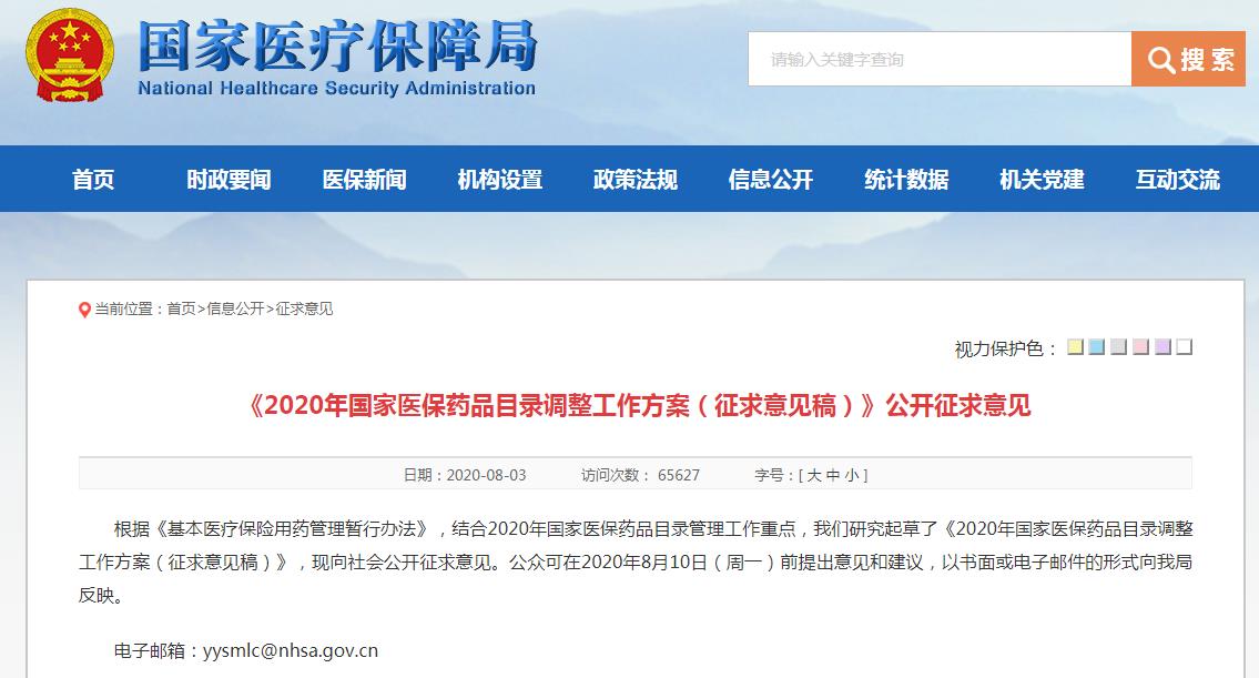 8月3日,国家医保局发布《2020年国家医保药品目录调整工作方案(征求意见稿)》(以下简称征求意见稿),向社会公开征求意见。