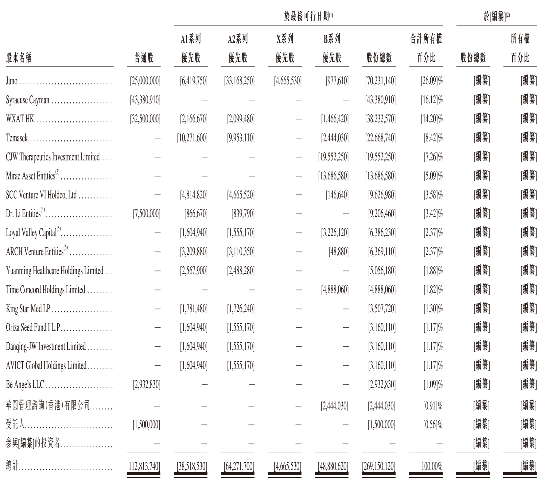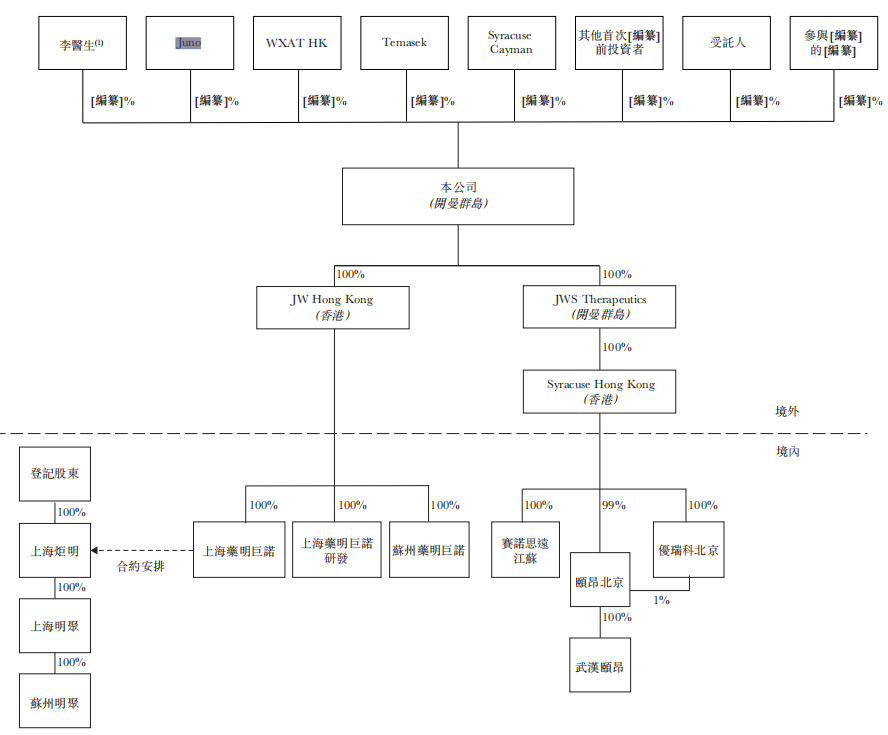 据IPO申请书披露,药明巨诺股东中,与最后可行日期,Juno合计所有权为26.09%,药明康德为14.20%,淡马锡为8.42%,优瑞科及刘诚博士旗下SyracuseCayman为16.12%。