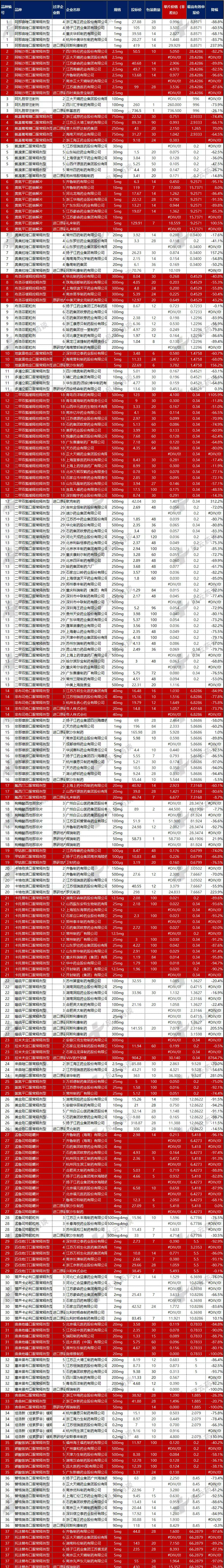 以下为风云药谈根据相关信息整理的56个集采品种的企业报价: