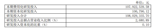 与多个在研产品相对应的是研发费用的巨额支出,今年上半年康希诺研发投入合计1.08亿元,占营收比例为2680.89%,其中,费用化研发投入为1.079亿元,资本化研发投入为10.7万元。