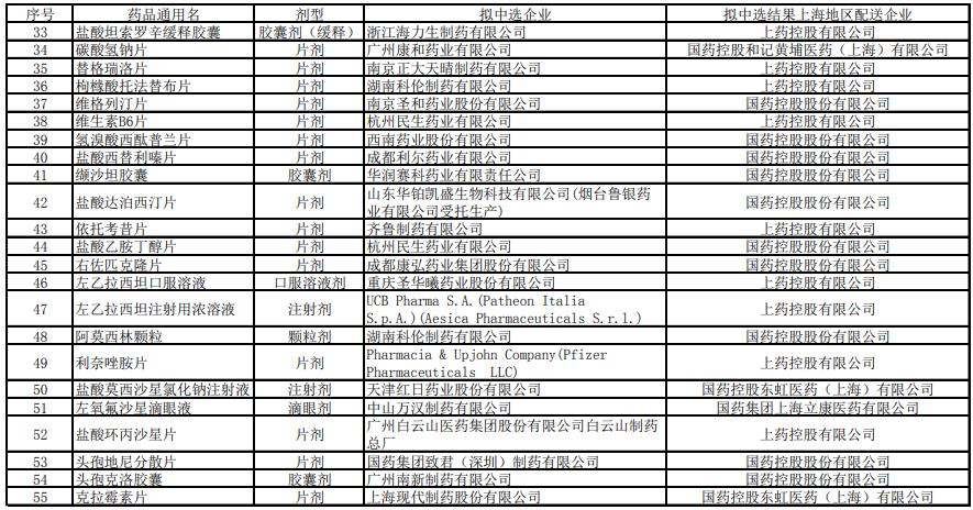 附全国药品集中采购拟中选结果上海地区配送企业公示表