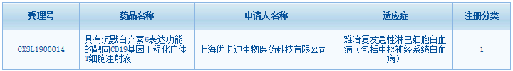 日前,位于张江科学城的细胞治疗企业上海优卡迪生物医药科技有限公司(以下简称“优卡迪”)的在研产品——具有沉默白介素6表达功能的靶向CD19基因工程化自体T细胞注射液获得了国家食品药品监督管理总局药品评审中心的临床试验默示许可,用于难治复发急性淋巴细胞白血病(包括中枢神经系统白血病)的治疗。