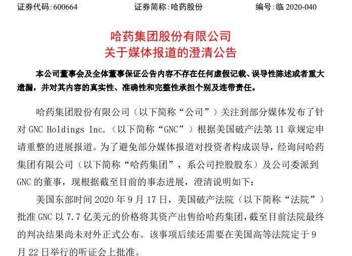 对此,哈药股份今日(9月18日)早间发布澄清公告称,截至目前法院最终的判决结果尚未对外正式公布,该事项后续还需要在美国高等法院定于9月22日举行的听证会上批准。