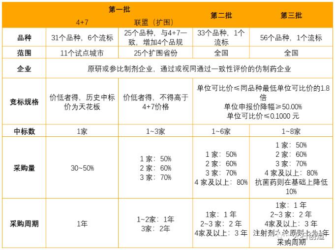 前三批带量采购文件对比