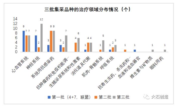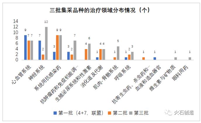 图4:三批集采品种的治疗领域分布情况