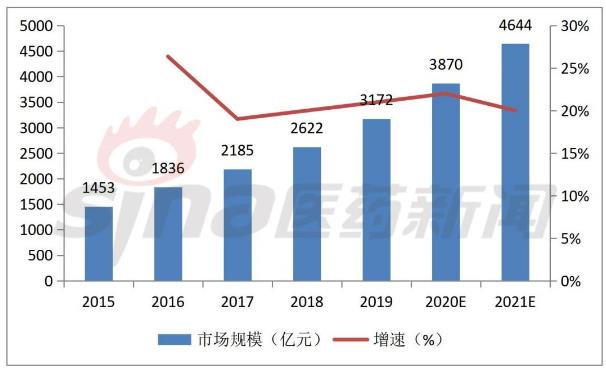 2015-2019年我国生物药市场规模及增速