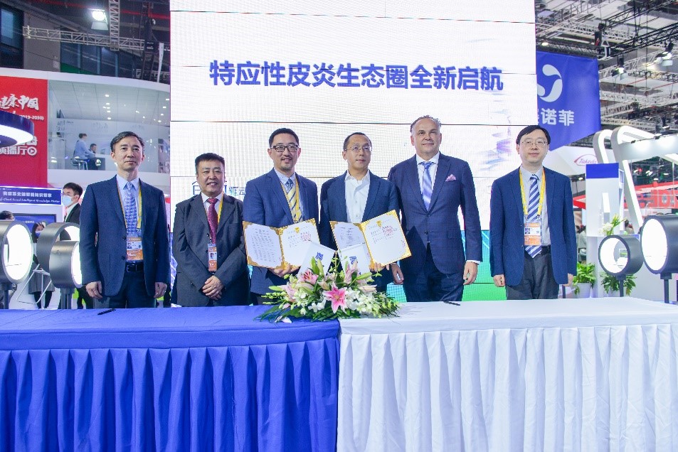 2020年11月6日,全球领先的生物制药公司赛诺菲在第三届中国国际进口博览会上聚焦其在特应性皮炎领域的整体解决方案,不仅与腾讯公司签署战略合作备忘录,以数字化赋能特应性皮炎患者全病程管理新路径;同时还携手业内权威专家,全面推动以特应性皮炎为代表的2型炎症领域的标准化治疗,从而实现从疾病诊疗到患者管理,从线下到线上的闭环新生态。